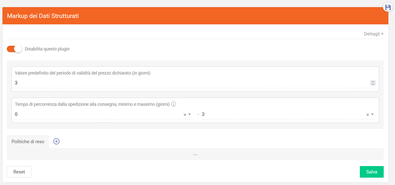 SEO e il nuovo plugin "Markup dei Dati Strutturati": Un'altra importante novità. Grazie al nuovo plugin dedicato il tuo shop comunica meglio con i motori di ricerca utilizzando lo standard di Schema.org. Questo rende possibile per Google e gli altri motiri di ricerca mostrare i tuoi prodotti con i "Rich Snippets" (prezzo, disponibilità, recensioni e badge di reso direttamente nei risultati di ricerca), aumentando il tasso di clic (CTR) sul tuo sito.