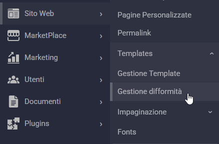 La sezione Sito Web > Template è stata riorganizzata e ora è divisa in due aree: