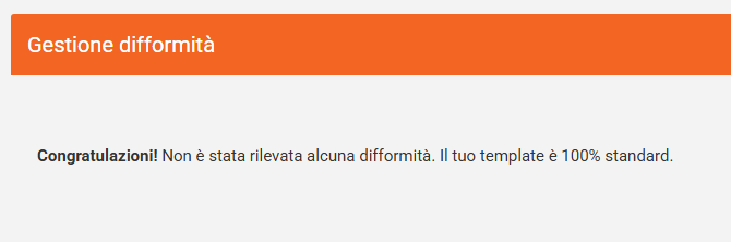 “Congratulazioni, il tuo template è standard al 100%.”