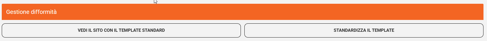 Per analizzare l’impatto delle difformità sono disponibili due azioni "Vedi il sito con il template standard" e "Standardizza il template".